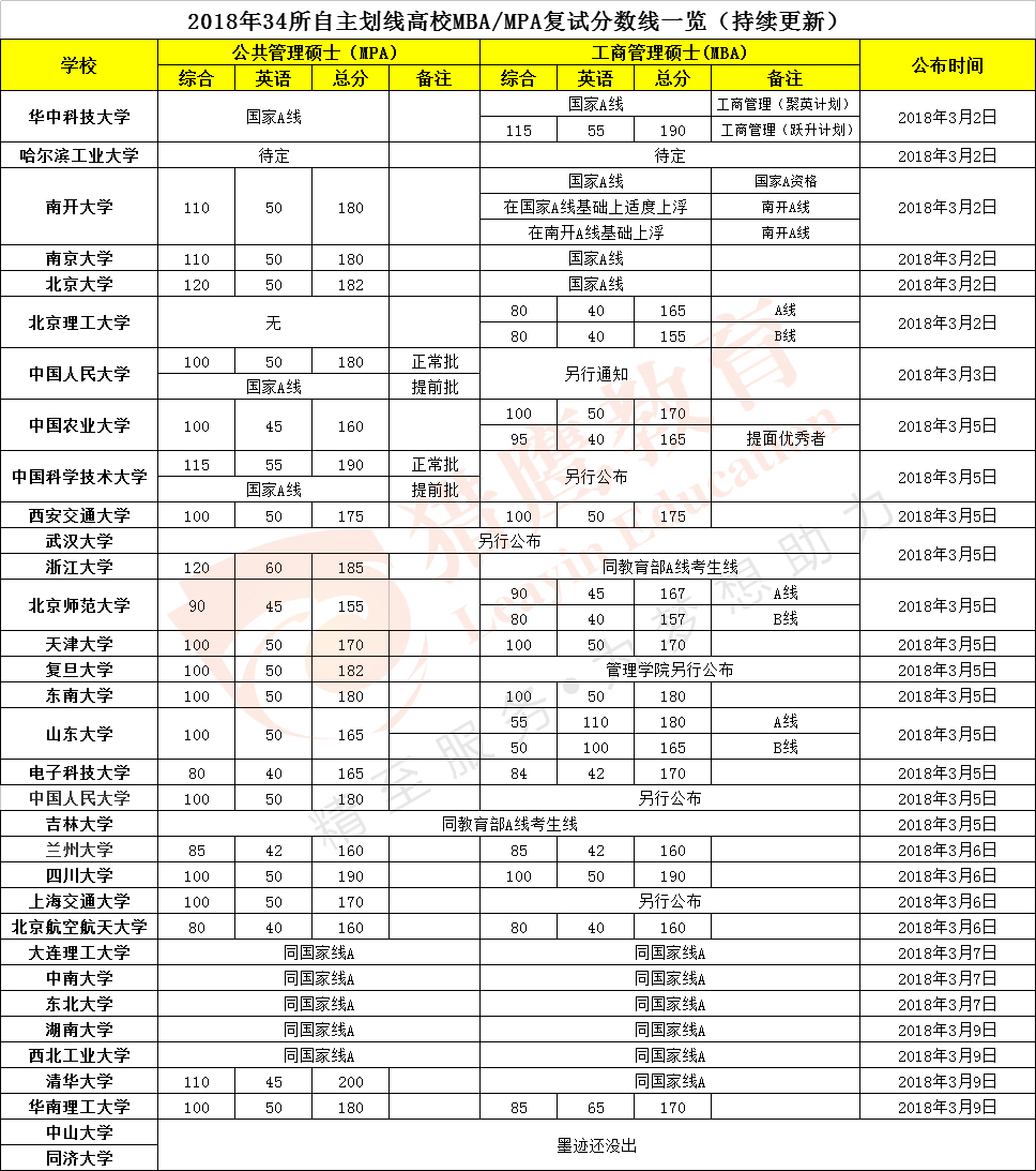 最新2018年MBA/MPA碩士研究生復(fù)試分?jǐn)?shù)線出爐院校動(dòng)態(tài)