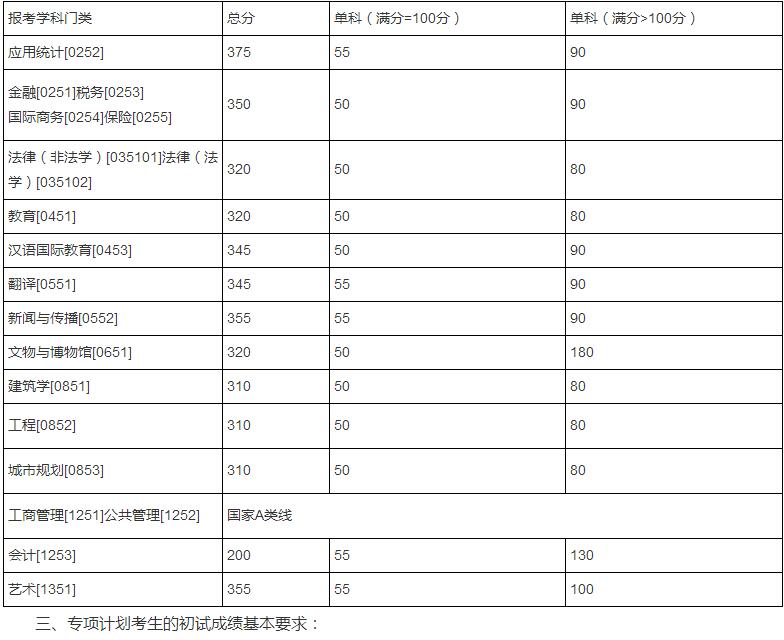1.以上為考生進入我校復試的初試成績基本要求,各學院可根據招生計劃、生源情況、學科專業(yè)特點等,向上調整復試分數線。