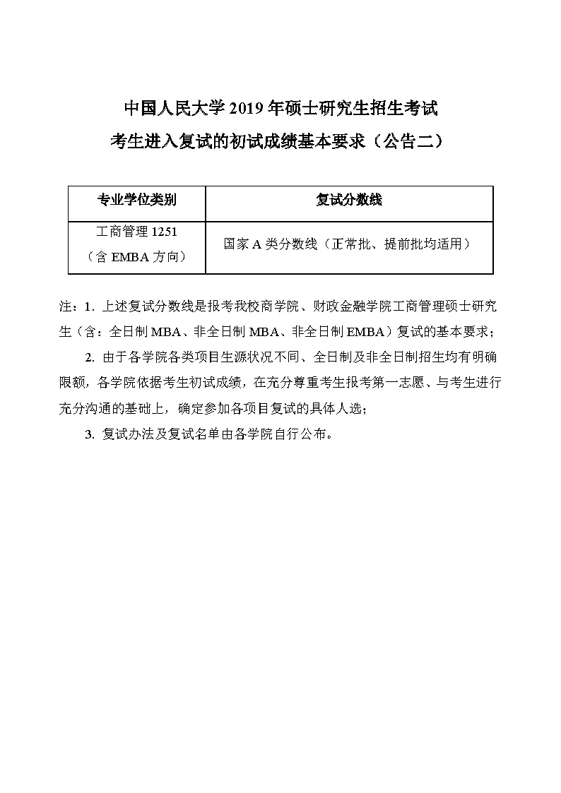 - 中國人民大學(xué)2019年復(fù)試分?jǐn)?shù)線
