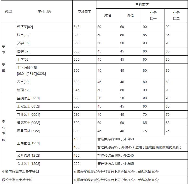 根據(jù)教育部《2019年全國(guó)碩士研究生招生工作管理規(guī)定》文件精神,結(jié)合我校實(shí)際情況,經(jīng)學(xué)校研究生招生領(lǐng)導(dǎo)小組研究決定,2019年碩士研究生入學(xué)考試復(fù)試基本線如下: