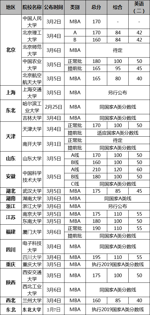 2019年全國(guó)34所MBA自主劃線院校復(fù)試線匯總院校動(dòng)態(tài)