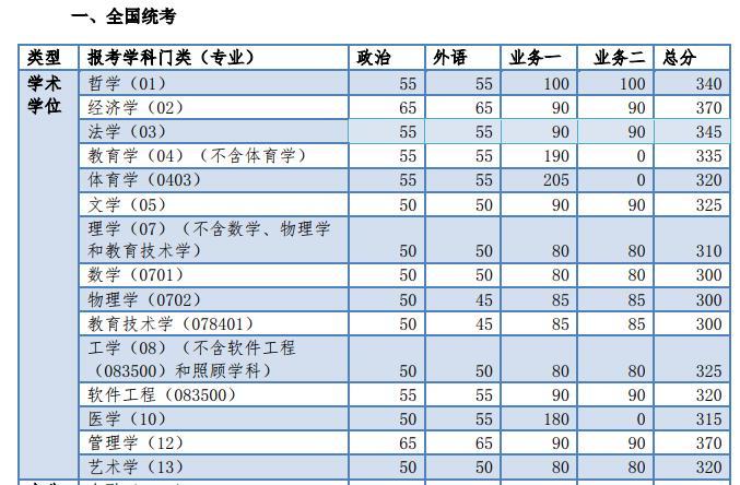 1. 政治理論、外國語滿分為 100 分,業(yè)務(wù)課滿分為 150 分(管理類綜合能力滿分為 200 分,教育 學(xué)、醫(yī)學(xué)門類的業(yè)務(wù)課滿分為 300 分)。