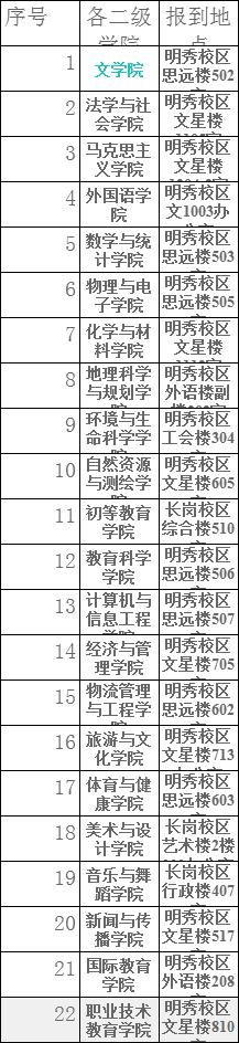 參加復試的考生于3月28日下午14:30到指定地點報到、提交資格審查材料。筆試和面試地點見《南寧師范大學2019全日制碩士研究生復試安排》(27日見本網(wǎng)公布)。各二級學院報到地點如下: