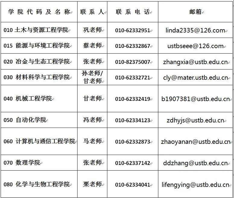 疫情防控非常時期,現(xiàn)場咨詢暫停,考生可通過電話或電子郵件方式進(jìn)行咨詢,研招辦電話為010-62332484,郵箱為yzb@ustb.edu.cn;各培養(yǎng)單位咨詢電話及郵箱附后。我們將盡力做到及時回復(fù)郵件,如個別郵件回復(fù)不及時,敬請諒解。