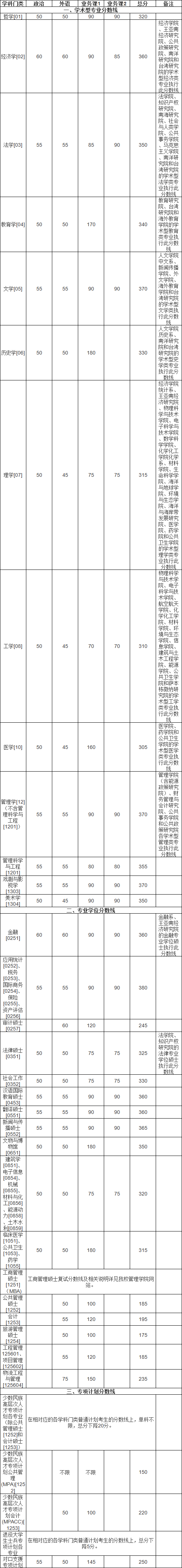廈門大學(xué)2021年碩士研究生復(fù)試分?jǐn)?shù)線院校動態(tài)