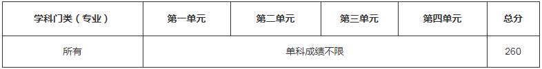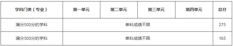 單科成績不限,總分不低于對應(yīng)統(tǒng)考的學(xué)科門類(專業(yè))學(xué)校分?jǐn)?shù)線的90%(四舍五入取整)。