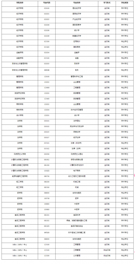 由于招生過程存在一定的動態(tài)變化,我校接收調(diào)劑的專業(yè)也將隨之持續(xù)更新。正式接收調(diào)劑的學(xué)科專業(yè),請考生以中國研究生招生信息網(wǎng)調(diào)劑系統(tǒng)中開通的學(xué)科專業(yè)為準(zhǔn),下表為我校擬接收調(diào)劑的學(xué)科專業(yè)。