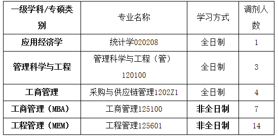 我校在4月6日調(diào)劑系統(tǒng)開(kāi)放后開(kāi)始進(jìn)行調(diào)劑錄取,還有如下學(xué)科有調(diào)劑名額(理論經(jīng)濟(jì)學(xué)、應(yīng)用經(jīng)濟(jì)學(xué)學(xué)術(shù)學(xué)位另行通知),歡迎有意愿的考生申報(bào)。