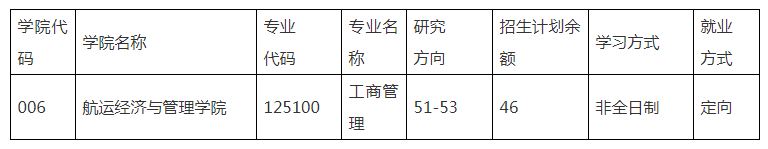 接收調(diào)劑專業(yè)為非全日制工商管理碩士(MBA),招生計劃余額等信息詳見下表: