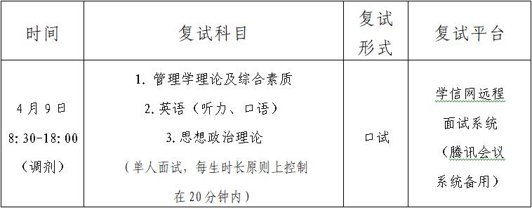 (三)復試成績以 100 分為滿分,計算方式如下:復試成績=管理學理論及綜合素質成績×60%+英語(聽力、口語)×20%+思想政治理論成績×20%。