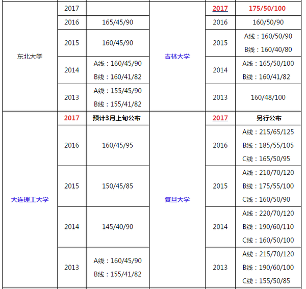 現(xiàn)在一些院校的2017年研究生入學考試復試分數(shù)線也在陸續(xù)公布中,現(xiàn)將34所自主劃線院校管理類聯(lián)考2013年-2017年的復試分數(shù)線匯總如下,供廣大考生在第一時間查詢院校復試分數(shù)并了解各院校面試及調(diào)劑等各項信息的發(fā)布情況。為方便考生進入理想院校,64調(diào)劑網(wǎng)在第一時間為廣大考生提供調(diào)劑服務(wù)咨詢。